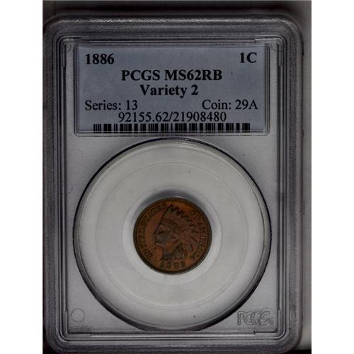 <B>1886<1C> Type Two MS62 Red and Brown PCGS.</B></I> Reddish-brown color overall with subtle blue highlights as the coin turns under a light. A few scattered carbon flecks serve to limit the grade on this scarcer variety.