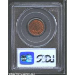 1886 1C Type Two PR64 Red PCGS. This is an intensely lustrous specimen striking with beautiful cherry-red color dominating the outward appearance on both sides. A few isolated and small sprays of steel-blue tinting are seen here and there, but we cannot find more than one or two blemishes that would seem to bar this coin from an even higher grade. Sharp in strike, as befits a proof, with modest brightness in the reverse field. Important notice: We expect to be auctioning lots at the rate of 200-250 per hour. Sometimes eBay Premier live bid software cannot keep up with that pace, so we strongly recommend that you place a realistic proxy bid now as insurance to avoid disappointment. Also please note that all Heritage/CAA lots purchased through eBay Premier carry a 20% Buyer's Premium. Please make sure you read the Terms and Conditions.