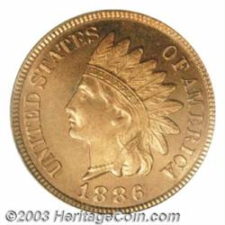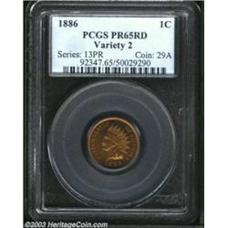 <TABLE cellSpacing=0 cellPadding=0 width="100%" bgColor=#000000 border=0><TBODY><TR><TD width="100%"><TABLE cellSpacing=1 cellPadding=3 width="100%" border=0><TBODY><TR><TD width="100%" bgColor=#79735c><FONT face=arial color=#ffffff size=3><B>Description</B> </FONT></TD></TR><TR><TD width="100%" bgColor=#ffffff><FONT face=arial size=2><B>1886 1C Type Two PR65 Red PCGS.</B></I> A hub change this year resulted in two different varieties of the 1886 proof Indian cent. Type Two examples, such as the present Gem, show the lowest feather in Liberty's headdress pointing between the CA in AMERICA. On Type One specimens, this feather points between the IC in AMERICA. Snow (1992) states that more than half (2,500 pieces) of the proofs delivered this year were of the Type Two variety. If this estimate is accurate, than either some of these coins have been misattributed as Type One examples, or this issue suffered an unusually high rate of attrition for an 1880s proof cent. Warm autumn-orange color accents the expertly preserved surfaces, and every feature is boldly defined. A unique opportunity for the advanced Indian cent specialist. Population: 3 in 65, 1 finer (8/03). </FONT></TD></TR></TBODY></TABLE></TD></TR></TBODY></TABLE><BR><A name=PricesRealized></A><TABLE cellSpacing=0 cellPadding=0 width="100%" bgColor=#000000 border=0><TBODY><TR><TD width="100%"><TABLE cellSpacing=1 cellPadding=3 width="100%" border=0><TBODY><TR><TD width="100%" bgColor=#79735c><A name=PR><FONT face=arial color=#ffffff size=3><B>Previous Prices from Heritage Auctions</B> </FONT></A></TD></TR><TR><TD bgColor=#f6f6ed><TABLE cellSpacing=0 cellPadding=0 width="100%" border=1><TBODY><TR><TD align=middle width="33%"><B>Date</B></TD><TD align=middle width="33%"><B>Service</B></TD><TD align=middle width="33%"><B>Price</B></TD></TR><TR bgColor=whitesmoke><TD width="33%"><B>06/08/2002</B></TD><TD width="33%">NGC</TD><TD width="33%">$8,625.00</TD></TR></TBODY></TABLE></TD></TR><TR><TD bgColor=#ffffff><FONT face=arial size=1 ?>PLEASE NOTE: All prices realized reflect the final hammer price PLUS the buyer's premium in auctions that charge a buyer's premium. Each item has a notation at the top of the listing indicating whether that lot included a buyer's premium. Example: A item that sells with a final hammer price of $100 and a 20% buyer's premium will display with a price realized of $120. All information listed is intended to be as accurate as possible, but errors are possible. Please use this guide carefully and inform us of any inaccuracies. </FONT></TD></TR></TBODY></TABLE></TD></TR></TBODY></TABLE><BR><TABLE cellSpacing=0 cellPadding=0 width="100%" bgColor=#000000 border=0><TBODY><TR><TD width="100%"><TABLE cellSpacing=1 cellPadding=3 width="100%" border=0><TBODY><TR><TD width="100%" bgColor=#79735c colSpan=6><FONT face=arial color=#ffffff size=3><B>Price Guide*</B> </FONT></TD></TR><TR bgColor=#f6f6ed><TD align=middle><B>Grade</B> </TD><TD align=middle><B>Coin World<BR>(Trends)</B> </TD><TD align=middle><B>Numismedia<BR>Retail</B> </TD><TD align=middle><B>Numismedia<BR>Wholesale</B> </TD><TD align=middle><B>Coin<BR>Universe</B> </TD><TD align=middle><B>Heritage<BR>Value Index</B> </TD></TR><TR bgColor=#ffffff><TD align=middle>64</TD><TD align=right>---</TD><TD align=right>---</TD><TD align=right>$7,590.00</TD><TD align=right>---</TD><TD align=right>$2,166.25</TD></TR><TR style="FONT-WEIGHT: bold" bgColor=#cccfdd><TD align=middle>65</TD><TD align=right>---</TD><TD align=right>---</TD><TD align=right>$8,950.00</TD><TD align=right>---</TD><TD align=right>$380.00</TD></TR><TR bgColor=#ffffff><TD align=middle>66</TD><TD align=right>---</TD><TD align=right>---</TD><TD align=right>$57,500.00</TD><TD align=right>---</TD><TD align=right>---</TD></TR><TR bgColor=#ffffff><TD colSpan=6><FONT size=1>*All information listed is intended to be as accurate as possible, but errors are possible. No item may be returned or refused based on this information which is provided as a service to our customers. You should contact each pricing source directly to determine the accuracy of this information. </FONT></TD></TR></TBODY></TABLE></TD></TR></TBODY></TABLE><BR><TABLE cellSpacing=0 cellPadding=0 width="100%" bgColor=#000000 border=0><TBODY><TR><TD width="100%"><TABLE cellSpacing=1 cellPadding=3 width="100%" border=0><TBODY><TR><TD width="100%" bgColor=#79735c><FONT face=arial color=#ffffff size=3><B>Population Guide</B> </FONT></TD></TR><TR bgColor=#ffffff><TD align=middle><!-- Begin Output of Population Grid--><TABLE cellSpacing=0 cellPadding=0 width="100%" border=0><TBODY><TR><TD vAlign=center><TABLE cellSpacing=0 width="100%" border=1 cellsadding="3"><TBODY><TR><TD vAlign=center><TABLE cellSpacing=0 cellPadding=3 width="100%" border=1><TBODY><TR><TD vAlign=center align=middle bgColor=#f0f1e8 colSpan=2 <CENTER><FONT face=Arial size=2><B>PCGS Pop </B></FONT><CENTER></CENTER></TD><TD vAlign=center align=middle bgColor=#f0f1e8 colSpan=2><CENTER><FONT face=Arial size=2><B>NGC Pop</B></CENTER></FONT></TD></TR><TR><TD vAlign=center><FONT face=Arial size=2>(65)</FONT> </TD><TD vAlign=center align=right><FONT face=Arial size=2>3</FONT> </TD><TD vAlign=center><FONT face=Arial size=2>(65)</FONT> </TD><TD vAlign=center align=right><FONT face=Arial size=2>0</FONT> </TD></TR><TR><TD vAlign=center><FONT face=Arial size=2>(>65)</FONT> </TD><TD vAlign=center align=right><FONT face=Arial size=2>1</FONT> </TD><TD vAlign=center><FONT face=Arial size=2>(>65)</FONT> </TD><TD vAlign=center align=right><FONT face=Arial size=2>0</FONT> </TD></TR></TBODY></TABLE></TD></TR></TBODY></TABLE></TD></TR></TBODY></TABLE><!-- End Output of Population Grid--> Important notice: Heritage usually auctions material at the rate of 200-250 lots per hour. On some occasions eBay Live bid software or the Internet may not be able to keep up with the pace of the auction. We recommend placing a realistic absentee bid now as insurance to avoid disappointment. Occasionally the auctioneer may