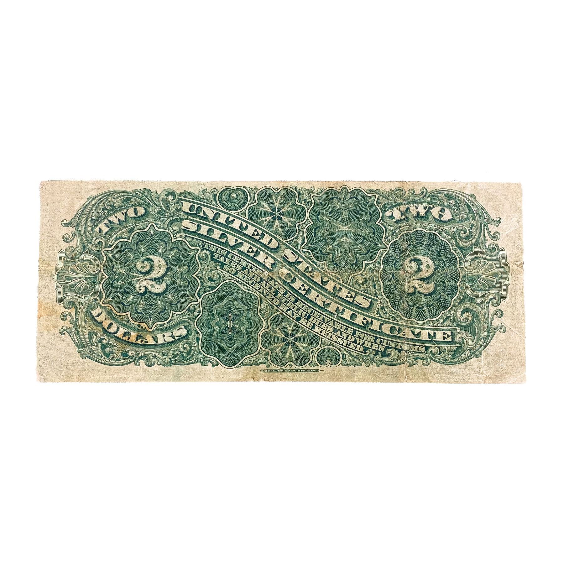 1886 $2 HANCOCK SILVER CERT. NOTE VF