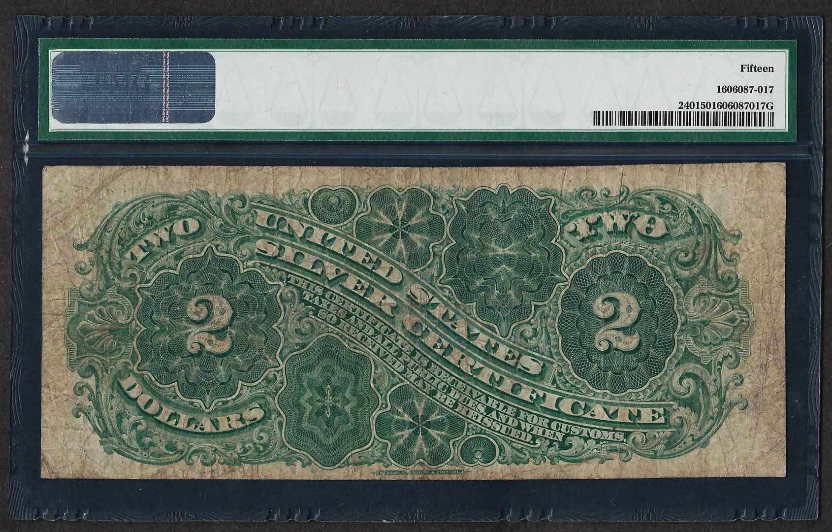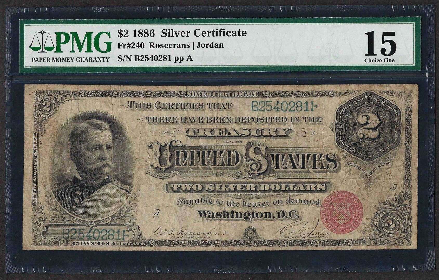 One 1886 $2 Silver Certificate Note Fr.240 PMG Choice Fine 15. PMG Certified.