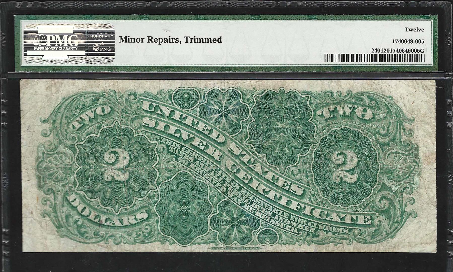 One 1886 $2 Silver Certificate Note Fr.240 PMG Fine 12. PMG Certified.