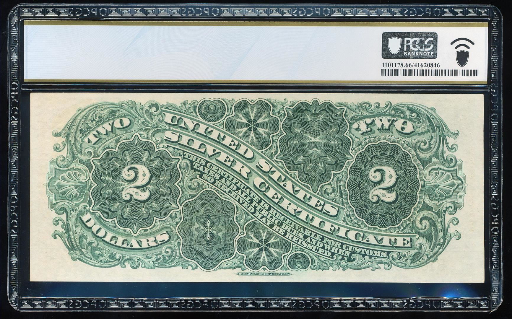 One 1886 $2 Silver Certificate Note Fr.242 PCGS Gem Uncirculated 66PPQ. PCGS Graded.