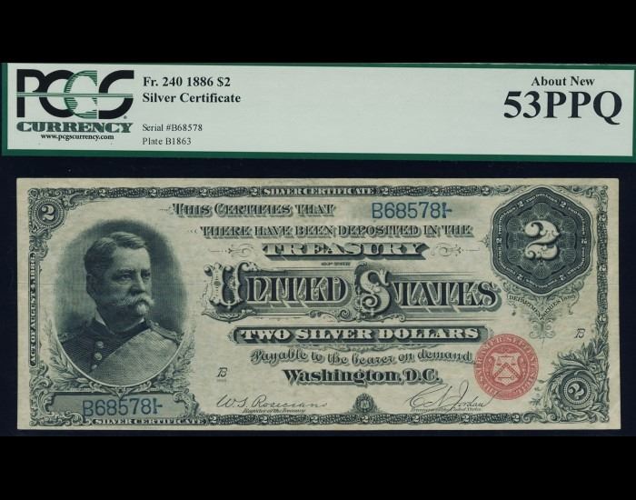 One 1886 $2 Silver Certificate PCGS 53PPQ.