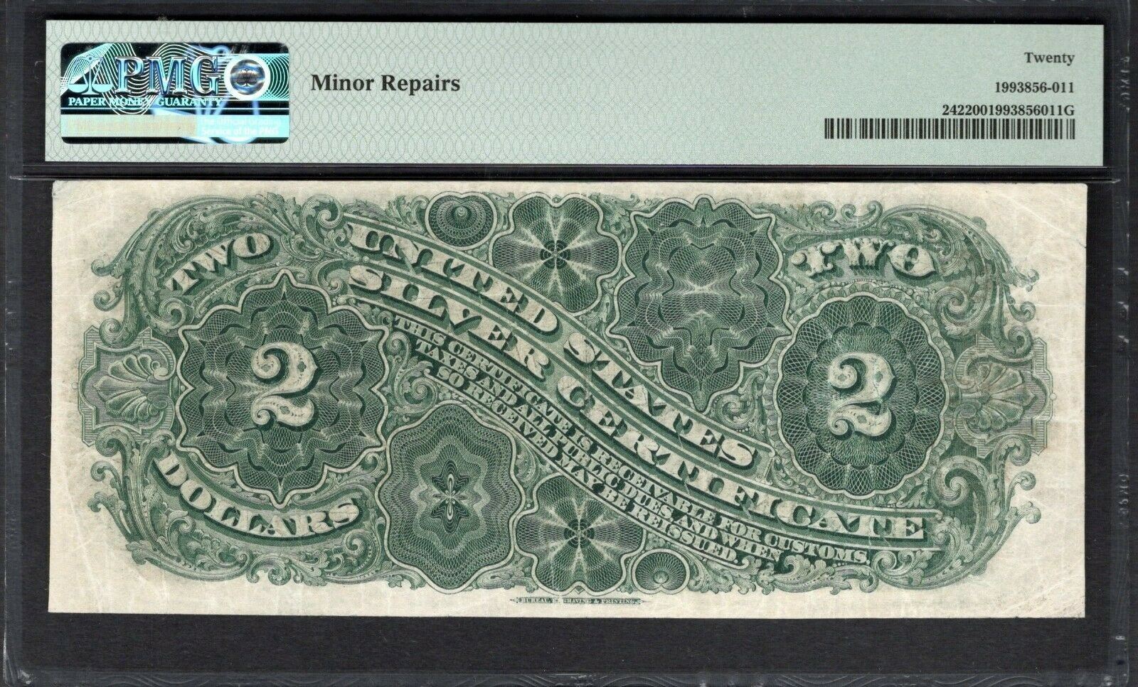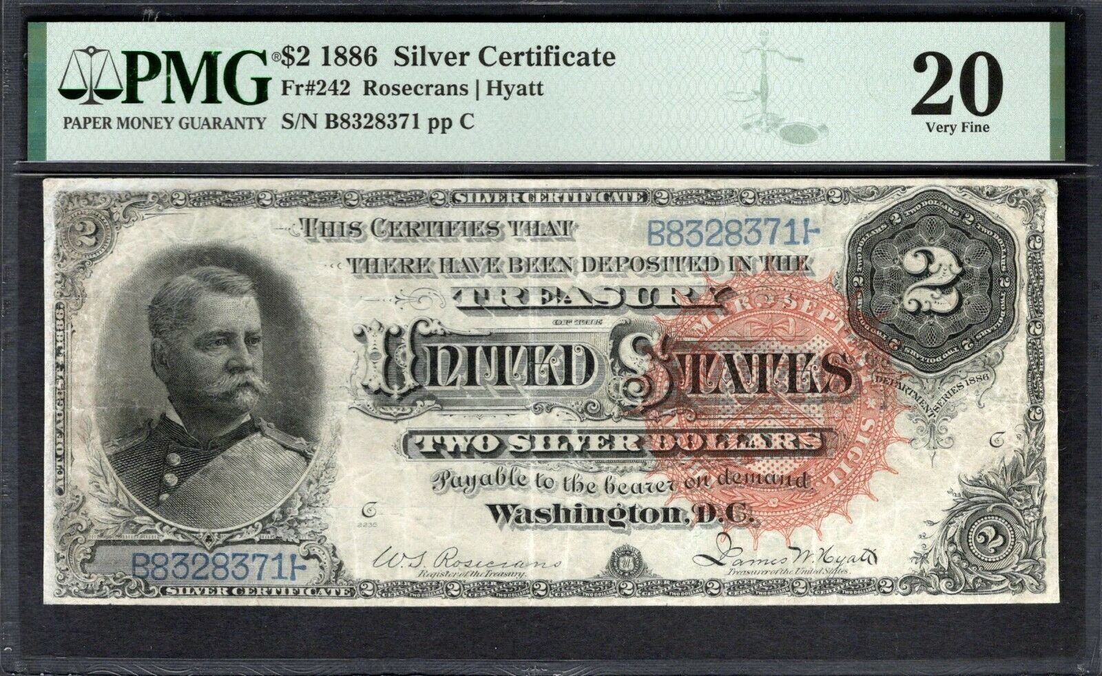 One 1886 $2 Silver Certificate PMG 20.