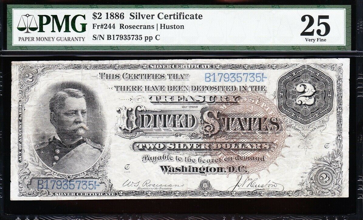One 1886 $2 Silver Certificate PMG 25.
