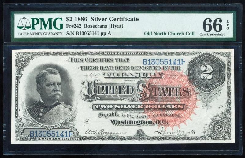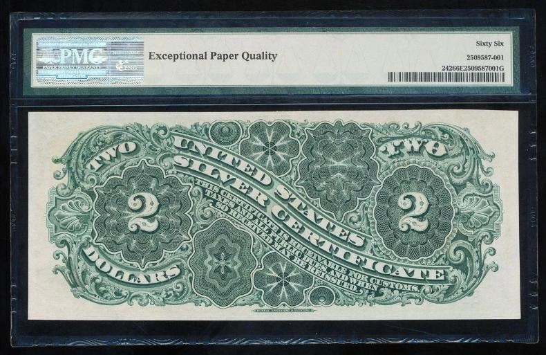 One 1886 $2 Silver Certificate PMG 66EPQ.