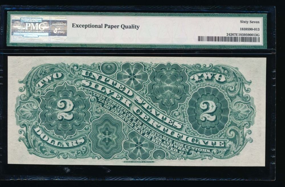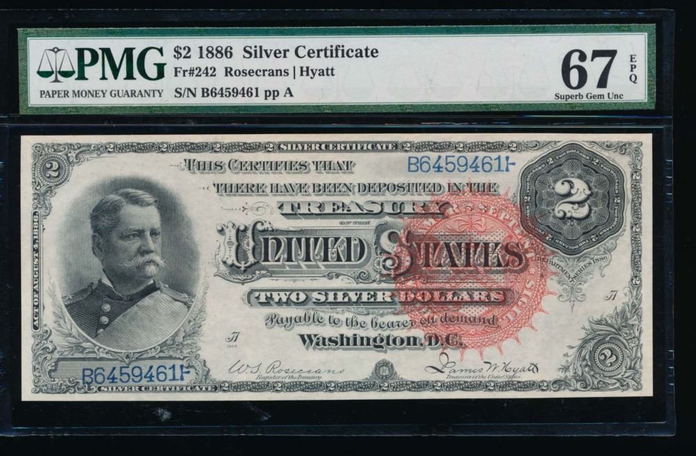 One 1886 $2 Silver Certificate PMG 67EPQ.