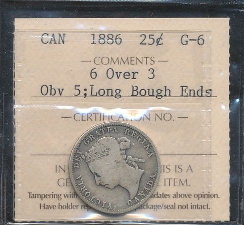 1886 25¢ 6 ov 3 Obv 5 ICCS G6.