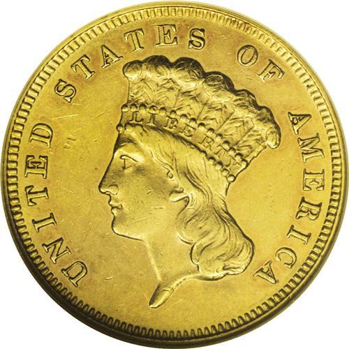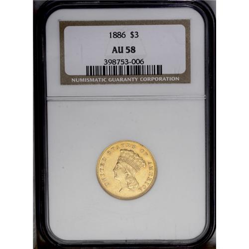 1886 $3 AU58 NGC. A mere 1,000 business strikes were c