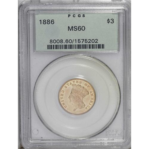 1886 $3 MS60 PCGS. There is strictly no sign of wear,