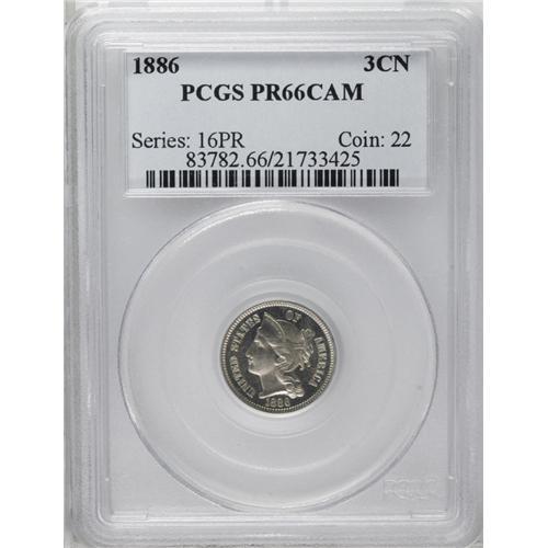 1886 3CN PR66 Cameo PCGS. Bold and brilliant with sur