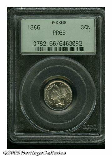 1886 3CN PR66 PCGS. A proof-only date, the presen
