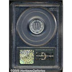 <B>1886 3CN PR66 PCGS.</B></I> This is a beautiful Gem quality representative whose bright, reflective surfaces are overlaid in a thin veil of ice-blue iridescence. There is not a single ill-defined feature on either side, nor can we find a handling mark of note. Some trivial flyspecks over the left obverse are hardly distracting.