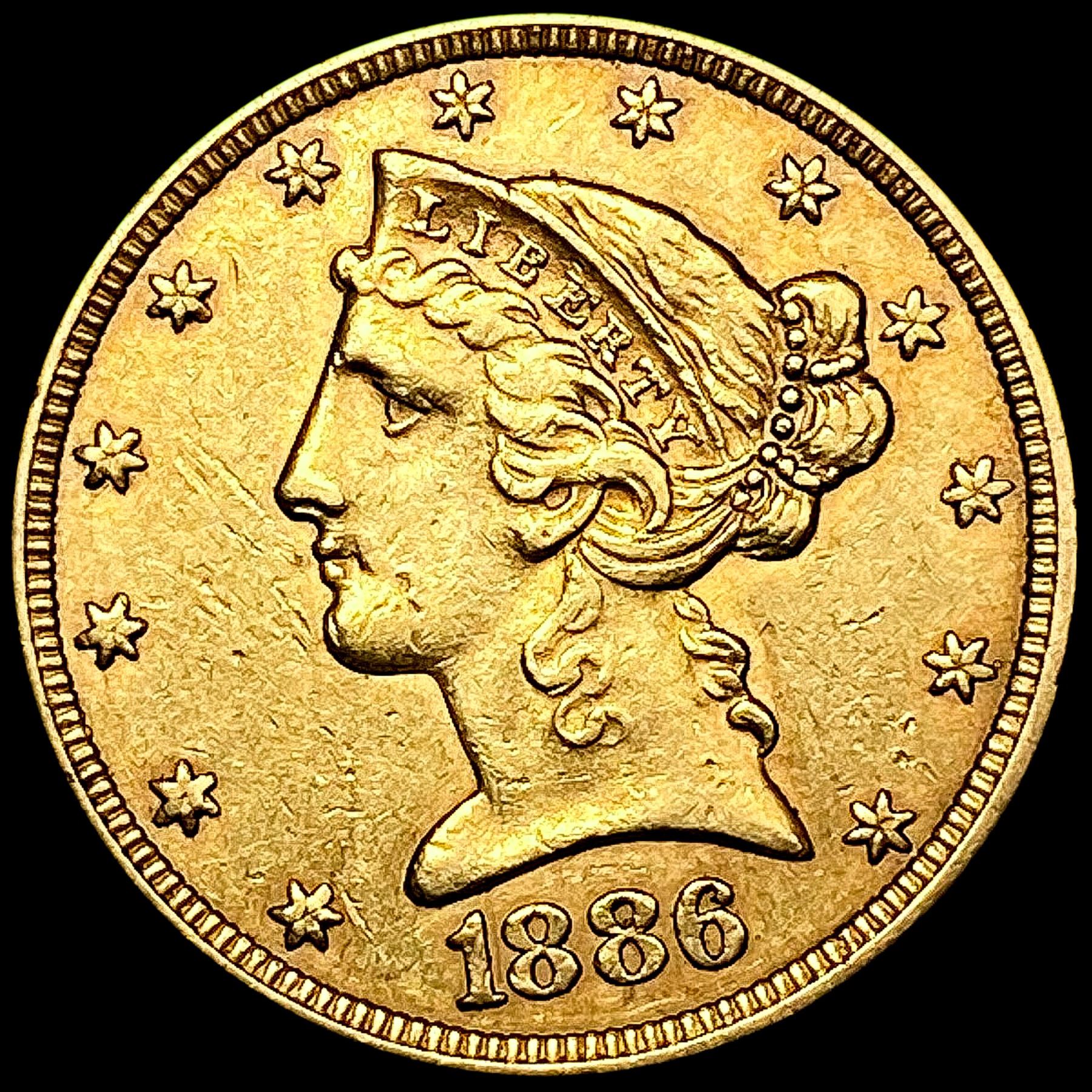 1886 $5 Gold Half Eagle CLOSELY UNCIRCULATED
