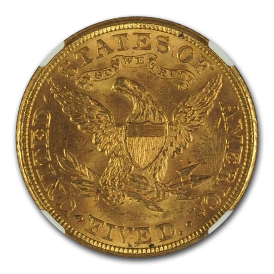One 1886 $5 Liberty Head Half Eagle Gold Coin NGC MS63.