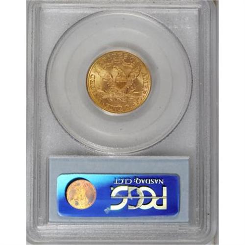 <B>1886 $5 MS64 PCGS.</B></I> Crisply struck save for the centers of stars 9 to 11. The obverse is prooflike, while the reverse has cartwheel luster. Tiny marks on the left obverse field determine the grade. Rare in such quality. Population: 10 in 64, 3 finer (8/07).<BR><BR><B>Coin Engraver:</B> Christian Gobrecht<BR><BR><b>Shipping:</b> Coins & Currency (<a target="_blank" href="http://www.heritageauctions.com/common/shipping.php">view shipping information</a>)