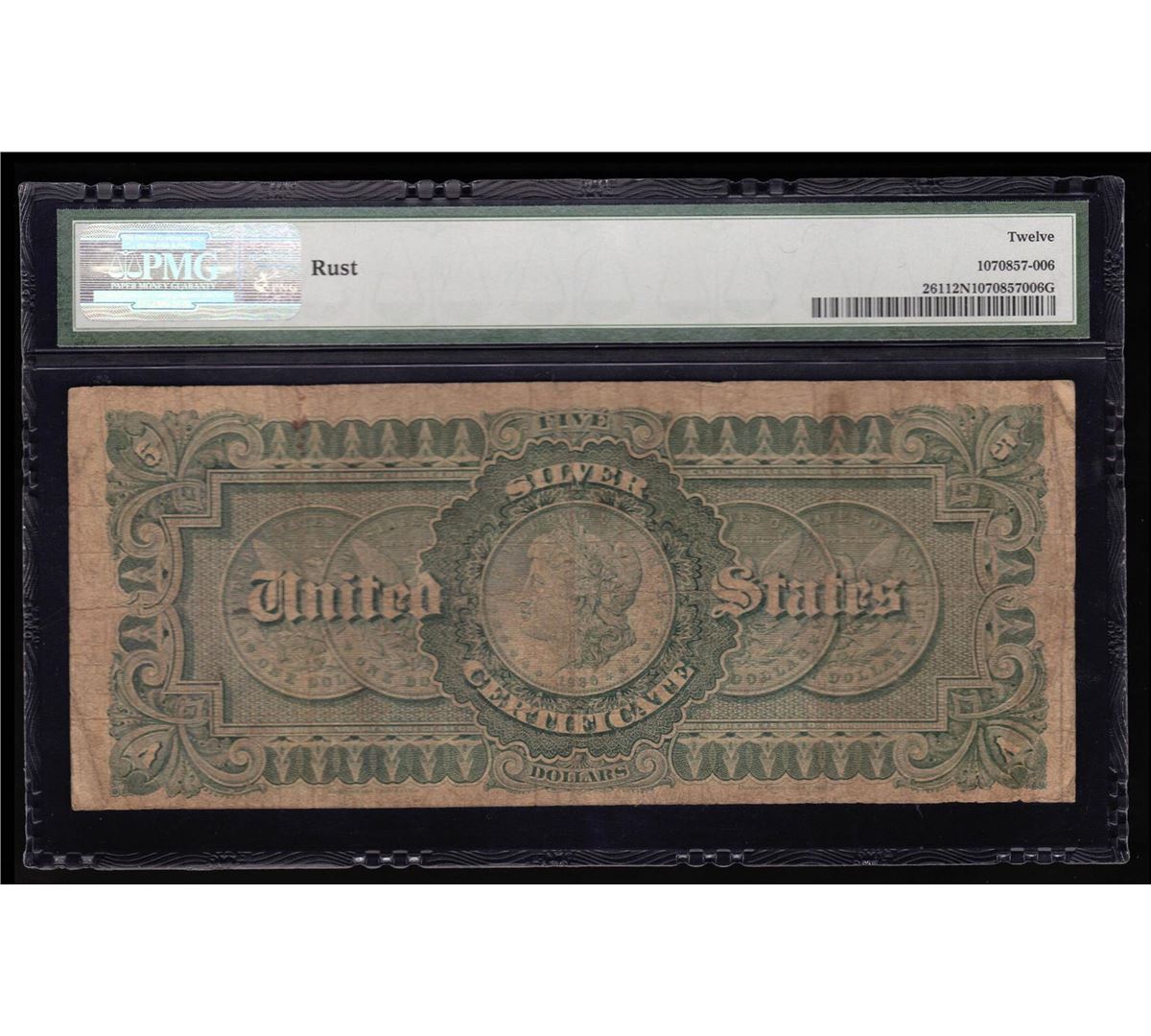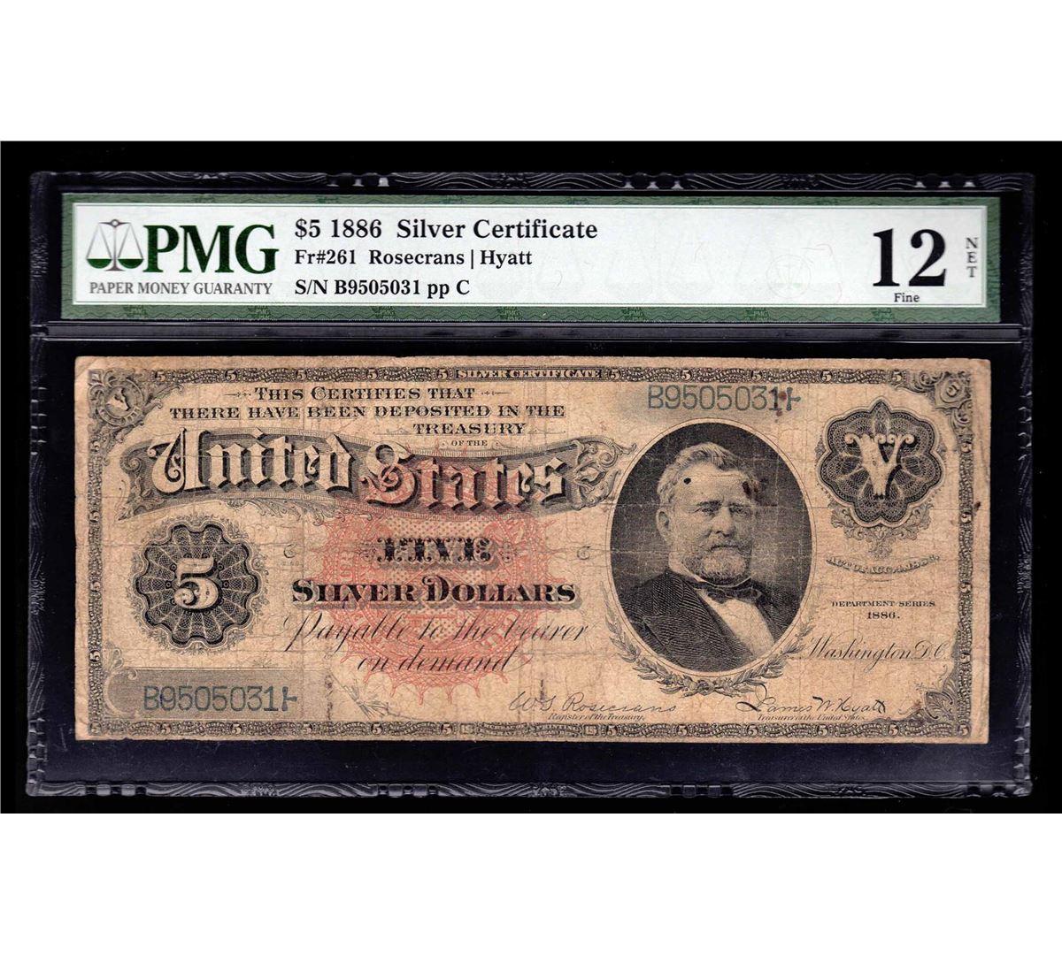 One 1886 $5 Silver Certificate Currency Note PMG F12 Net. PMG Certified.