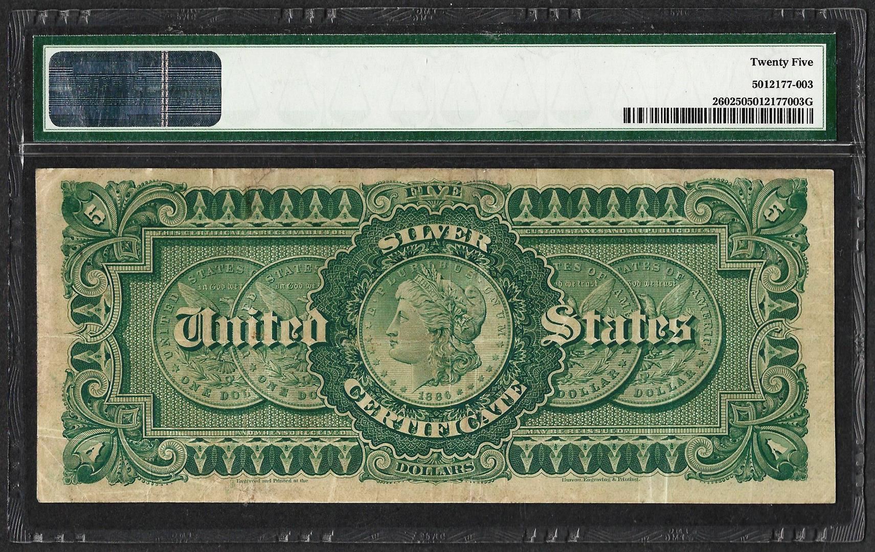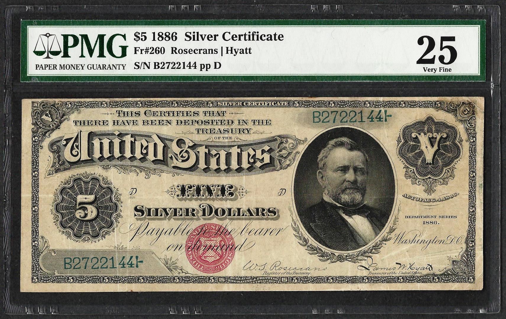 One 1886 $5 Silver Certificate Note Fr.260 PMG Very Fine 25. PMG Certified.