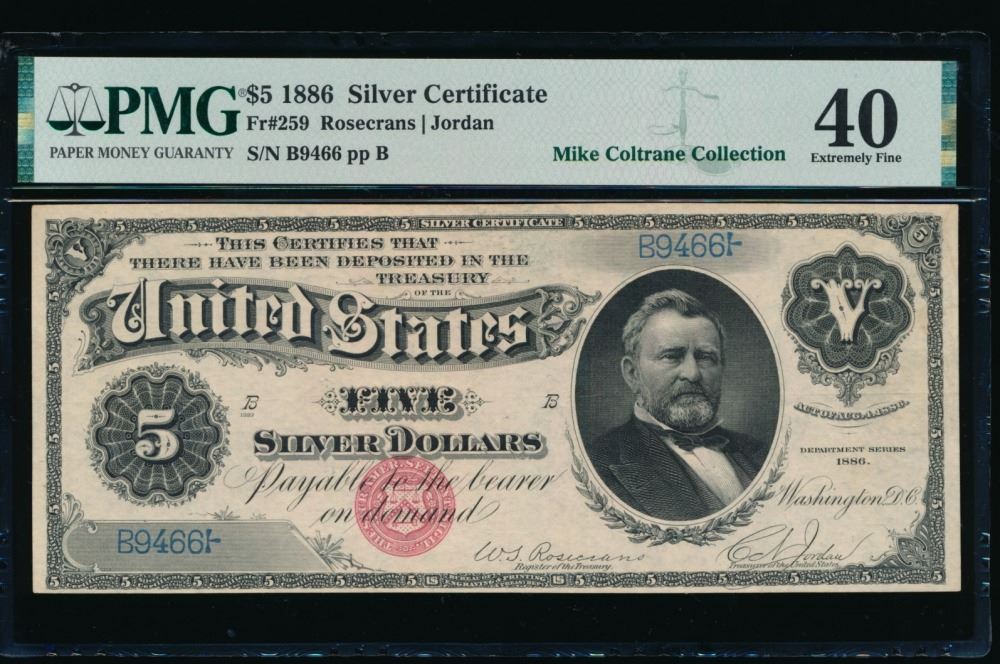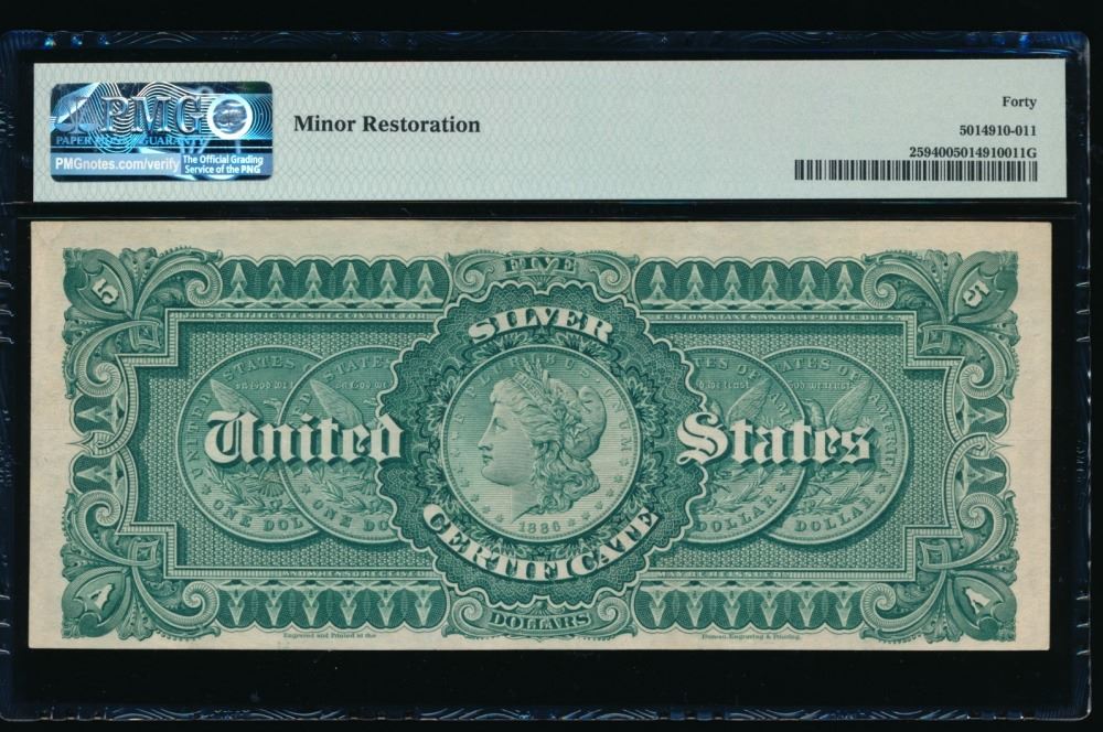 One 1886 $5 Silver Certificate PMG 40.