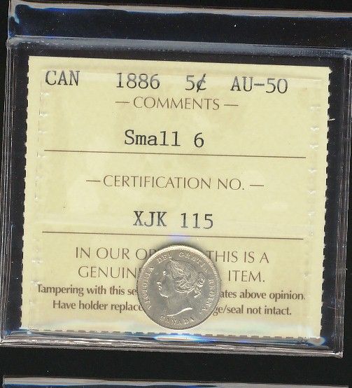 1886 5¢ Sml 6 ICCS AU50. Scarce date.