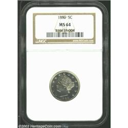 <TABLE cellSpacing=0 cellPadding=0 width="100%" bgColor=#000000 border=0><TBODY><TR><TD width="100%"><TABLE cellSpacing=1 cellPadding=3 width="100%" border=0><TBODY><TR><TD width="100%" bgColor=#79735c><FONT face=arial color=#ffffff size=3><B>Description</B> </FONT></TD></TR><TR><TD width="100%" bgColor=#ffffff><FONT face=arial size=2><B>1886 5C MS64 NGC.</B></I> Infrequently seen, this prooflike nickel shows slight weakness on the highpoints and matte-like devices. Only the slightest amount of toning shows sprinkles across portions of the coin's surfaces. </FONT></TD></TR></TBODY></TABLE></TD></TR></TBODY></TABLE><BR><A name=PricesRealized></A><TABLE cellSpacing=0 cellPadding=0 width="100%" bgColor=#000000 border=0><TBODY><TR><TD width="100%"><TABLE cellSpacing=1 cellPadding=3 width="100%" border=0><TBODY><TR><TD width="100%" bgColor=#79735c><A name=PR><FONT face=arial color=#ffffff size=3><B>Previous Prices from Heritage Auctions</B> </FONT></A></TD></TR><TR><TD bgColor=#f6f6ed><TABLE cellSpacing=0 cellPadding=0 width="100%" border=1><TBODY><TR><TD align=middle width="33%"><B>Date</B></TD><TD align=middle width="33%"><B>Service</B></TD><TD align=middle width="33%"><B>Price</B></TD></TR><TR bgColor=whitesmoke><TD width="33%"><B>05/03/2003</B></TD><TD width="33%">PCGS</TD><TD width="33%">$1,265.00</TD></TR><TR bgColor=whitesmoke><TD width="33%"><B>05/01/2001</B></TD><TD width="33%">PCGS</TD><TD width="33%">$1,150.00</TD></TR><TR bgColor=whitesmoke><TD width="33%"><B>06/04/1999</B></TD><TD width="33%">PCGS</TD><TD width="33%">$776.25</TD></TR><TR bgColor=whitesmoke><TD width="33%"><B>06/01/1996</B></TD><TD width="33%">PCGS</TD><TD width="33%">$880.00</TD></TR><TR bgColor=whitesmoke><TD width="33%"><B>03/01/1997</B></TD><TD width="33%">PCGS</TD><TD width="33%">$743.00</TD></TR><TR bgColor=whitesmoke><TD width="33%"><B>09/24/1999</B></TD><TD width="33%">NGC</TD><TD width="33%">$747.50</TD></TR></TBODY></TABLE></TD></TR><TR><TD bgColor=#ffffff><FONT face=arial size=1 ?>PLEASE NOTE: All prices realized reflect the final hammer price PLUS the buyer's premium in auctions that charge a buyer's premium. Each item has a notation at the top of the listing indicating whether that lot included a buyer's premium. Example: A item that sells with a final hammer price of $100 and a 20% buyer's premium will display with a price realized of $120. All information listed is intended to be as accurate as possible, but errors are possible. Please use this guide carefully and inform us of any inaccuracies. </FONT></TD></TR></TBODY></TABLE></TD></TR></TBODY></TABLE><BR><TABLE cellSpacing=0 cellPadding=0 width="100%" bgColor=#000000 border=0><TBODY><TR><TD width="100%"><TABLE cellSpacing=1 cellPadding=3 width="100%" border=0><TBODY><TR><TD width="100%" bgColor=#79735c colSpan=6><FONT face=arial color=#ffffff size=3><B>Price Guide*</B> </FONT></TD></TR><TR bgColor=#f6f6ed><TD align=middle><B>Grade</B> </TD><TD align=middle><B>Coin World<BR>(Trends)</B> </TD><TD align=middle><B>Numismedia<BR>Retail</B> </TD><TD align=middle><B>Numismedia<BR>Wholesale</B> </TD><TD align=middle><B>Coin<BR>Universe</B> </TD><TD align=middle><B>Heritage<BR>Value Index</B> </TD></TR><TR bgColor=#ffffff><TD align=middle>63</TD><TD align=right>$1,000.00</TD><TD align=right>$920.00</TD><TD align=right>$735.00</TD><TD align=right>$875.00</TD><TD align=right>$704.38</TD></TR><TR style="FONT-WEIGHT: bold" bgColor=#cccfdd><TD align=middle>64</TD><TD align=right>$1,500.00</TD><TD align=right>---</TD><TD align=right>$900.00</TD><TD align=right>$1,400.00</TD><TD align=right>$951.17</TD></TR><TR bgColor=#ffffff><TD align=middle>65</TD><TD align=right>$4,500.00</TD><TD align=right>---</TD><TD align=right>$1,950.00</TD><TD align=right>$4,500.00</TD><TD align=right>$3,078.00</TD></TR><TR bgColor=#ffffff><TD colSpan=6><FONT size=1>*All information listed is intended to be as accurate as possible, but errors are possible. No item may be returned or refused based on this information which is provided as a service to our customers. You should contact each pricing source directly to determine the accuracy of this information. </FONT></TD></TR></TBODY></TABLE></TD></TR></TBODY></TABLE><BR><TABLE cellSpacing=0 cellPadding=0 width="100%" bgColor=#000000 border=0><TBODY><TR><TD width="100%"><TABLE cellSpacing=1 cellPadding=3 width="100%" border=0><TBODY><TR><TD width="100%" bgColor=#79735c><FONT face=arial color=#ffffff size=3><B>Population Guide</B> </FONT></TD></TR><TR bgColor=#ffffff><TD align=middle><!-- Begin Output of Population Grid--><TABLE cellSpacing=0 cellPadding=0 width="100%" border=0><TBODY><TR><TD vAlign=center><TABLE cellSpacing=0 width="100%" border=1 cellsadding="3"><TBODY><TR><TD vAlign=center><TABLE cellSpacing=0 cellPadding=3 width="100%" border=1><TBODY><TR><TD vAlign=center align=middle bgColor=#f0f1e8 colSpan=2 <CENTER><FONT face=Arial size=2><B>PCGS Pop </B></FONT><CENTER></CENTER></TD><TD vAlign=center align=middle bgColor=#f0f1e8 colSpan=2><CENTER><FONT face=Arial size=2><B>NGC Pop</B></CENTER></FONT></TD></TR><TR><TD vAlign=center><FONT face=Arial size=2>(64)</FONT> </TD><TD vAlign=center align=right><FONT face=Arial size=2>49</FONT> </TD><TD vAlign=center><FONT face=Arial size=2>(64)</FONT> </TD><TD vAlign=center align=right><FONT face=Arial size=2>40</FONT> </TD></TR><TR><TD vAlign=center><FONT face=Arial size=2>(>64)</FONT> </TD><TD vAlign=center align=right><FONT face=Arial size=2>20</FONT> </TD><TD vAlign=center><FONT face=Arial size=2>(>64)</FONT> </TD><TD vAlign=center align=right><FONT face=Arial size=2>24</FONT> </TD></TR></TBODY></TABLE></TD></TR></TBODY></TABLE></TD></TR></TBODY></TABLE><!-- End Output of Population Grid--> Important notice: Heritage usually auctions material at the rate of 200-250 lots per hour. On some occasions eBay Live bid software or the Internet may not be able to keep up with the pace of the auction. We recommend placing a realistic absentee bid now as insurance to avoid disappointment. Occasiona