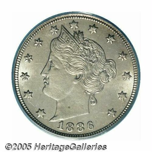 <B>1886<5C> MS64 PCGS.</B></I> Well struck for this semi-key issue, displaying a bright, satiny appearance overall and a network of die cracks about the obverse periphery. While occasionally found in marginal Uncirculated condition, Choice and better examples of this lower mintage date are legitimately scarce. Population: 57 in 64, 28 finer (4/05).