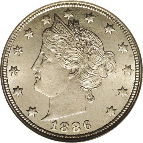 <B>1886<5C> MS65 NGC.</B></I> This is an issue that we have a great deal of respect for. In this case, the low original mintage does indeed correspond to low availability in all grades. Mint State coins are especially scarce and there have only been 27 other Gems certified by NGC with three finer (4/06). This lovely coin has bright mint luster and each side is covered with lovely gray-golden toning with light rose and mint-green overtones. Sharply struck in the centers with soft definition on the peripheral stars.