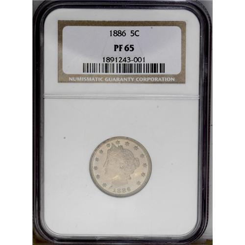 1886 5C PR65 NGC. Well struck with pleasing, variegate 1886[5C] PR65 NGC.