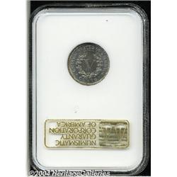 <B>1886<5C> PR65 NGC.</B></I> Beautiful eye appeal is promoted by exquisitely well struck devices, pleasing pale powder-blue and light beige toning, and bright surfaces virtually free of abrasions or unsightly spotting. <BR><BR><B>Important notice:</B> Heritage usually auctions material at the rate of 200-250 lots per hour. On some occasions eBay Live bid software or the Internet may not be able to keep up with the pace of the auction. We recommend placing a realistic absentee bid now as insurance to avoid disappointment. Occasionally the auctioneer may eliminate or reject an eBay Live bid, and the auctioneer may also reopen a lot after the close of the eBay live bidding (usually because we missed an audience bid), and may reject your bid even if it shows you as the winning bidder. By bidding via eBay Live, you agree that Heritage may award the lot to another bidder at its sole discretion under the circumstances described above or any other reasonable circumstances. Since eBay bids are not shown to us until we open the lot on the floor, we treat those bids just like floor bids. In most cases the floor responds before the eBay bid is presented to us, due to Internet lag time, so for consistency we have made it a policy that floor bids are always considered first over tie eBay live bids. Also please note that all Heritage lots purchased through eBay Live carry a 20% Buyer's Premium. Please make sure you read the Terms and Conditions before you bid.
