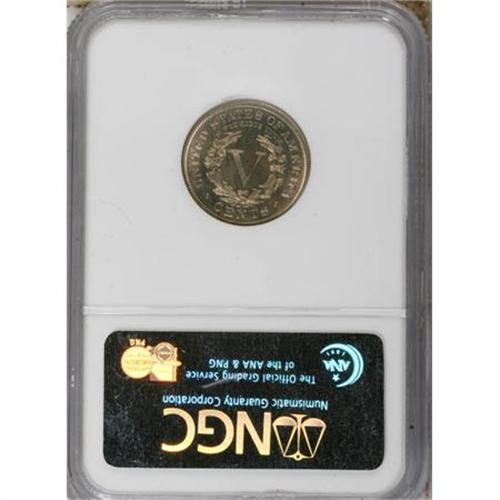 <B>1886 5C PR66 NGC.</B></I> The obverse of this gleaming Premium Gem proof is predominantly ice-blue, while the upper part of that side and the reverse are grass-green. A decisively struck and incredibly appealing example of this popular issue.<BR><BR><B>Coin Engraver:</B> Charles E. Barber<BR><BR><b>Shipping:</b> Coins & Currency (<a target="_blank" href="http://www.heritageauctions.com/common/shipping.php">view shipping information</a>)