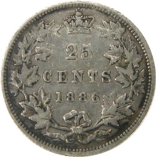 1886 6 Over 3, Obverse 5, Long Bough Ends ICCS F-12. Medium slate rim toning