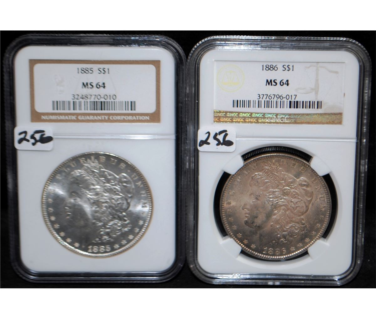 1886 AND 1885 MORGAN DOLLARS - NGC MS64 -SOLD PER COIN TIMES 2