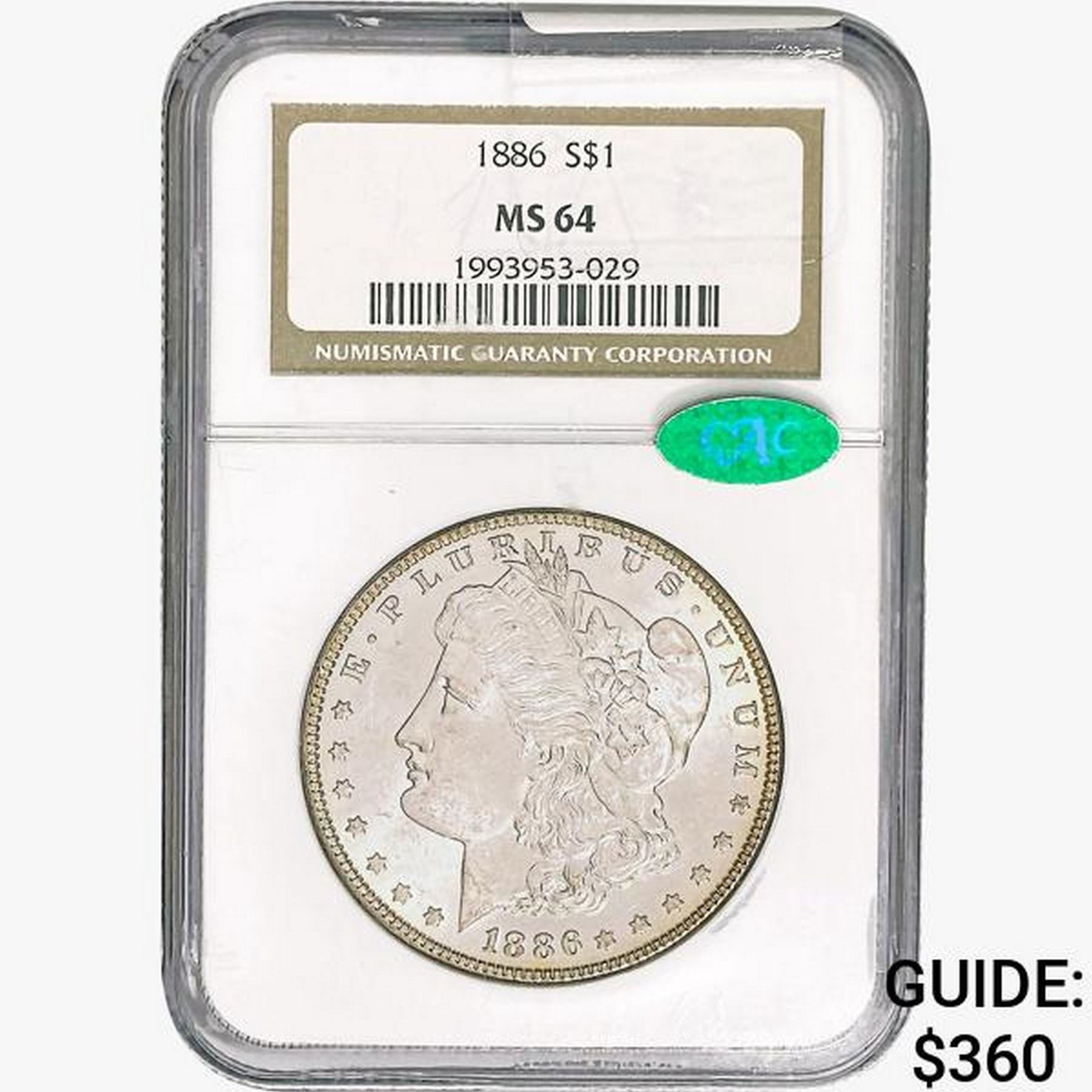 1886 CAC Morgan Silver Dollar NGC MS64