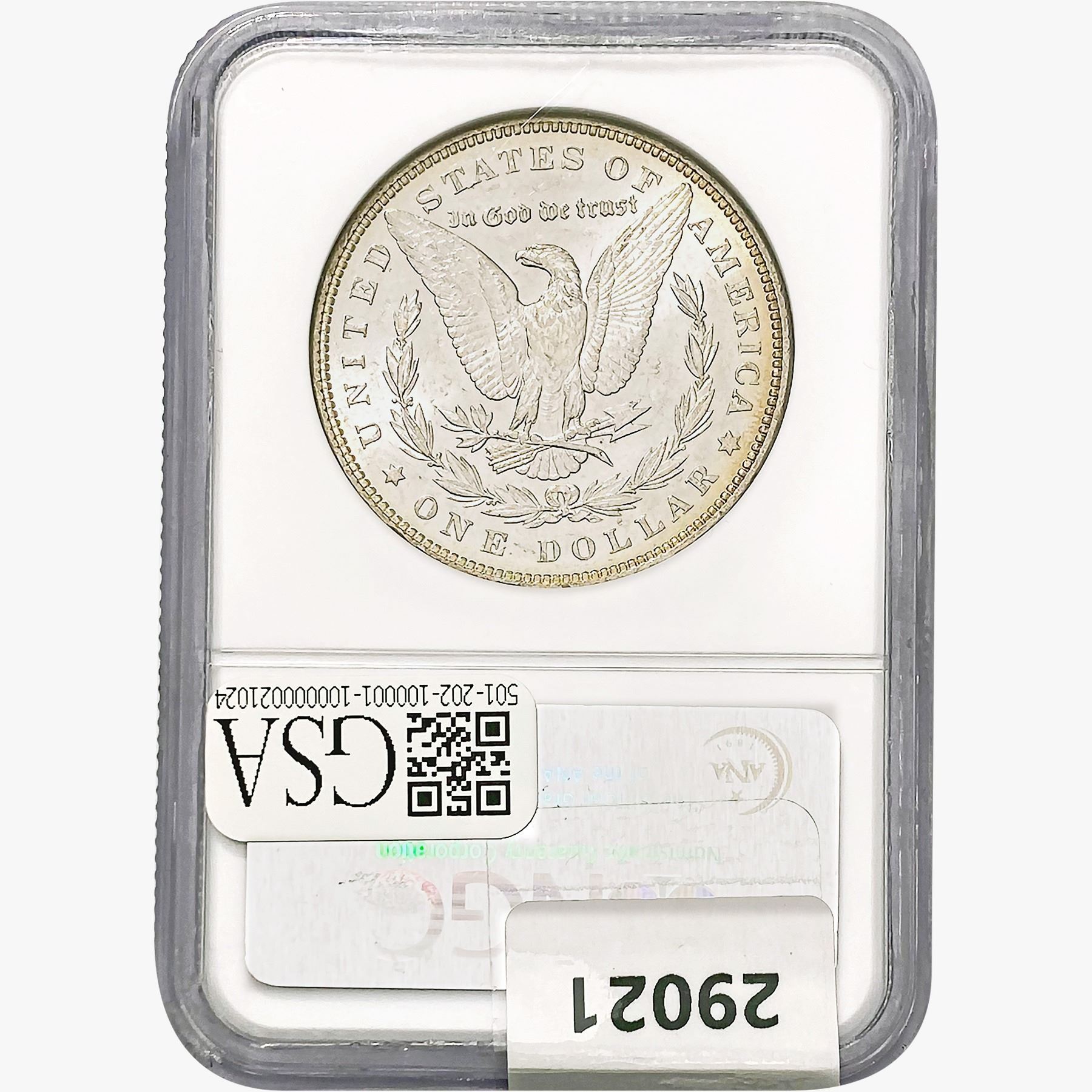 l. All non-certified coins and currency are guaranteed genuine, but are not guaranteed as to grade, since grading is a matter of opinion, an art and not a science, and therefore the description rendered by GSA or any third-party grading service may not agree with the opinion of others (including trained experts), and the same expert may not grade the same item with the same grade at two different times. GSA may, but is not obligated to, express an opinion as to non-certified numismatic items, in GSA’s opinion, or by its employees’ experience and the current interpretation of the American Numismatic Association’s standards as of the date the catalog was prepared. There is no guarantee or warranty expressed or implied that the grading opinions utilized by GSA, if any, will meet the standards of any grading service at any time in the future.