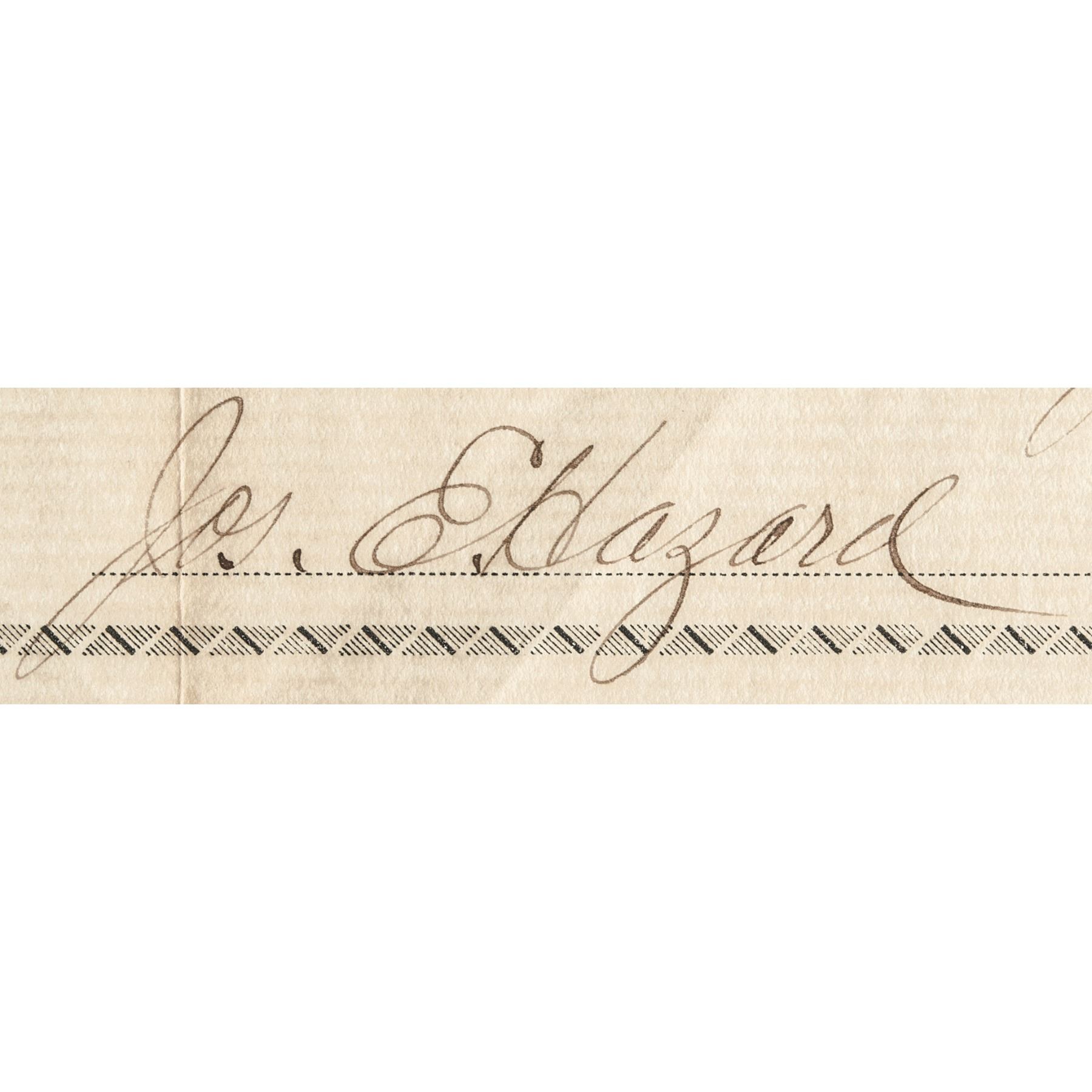 A rare piece of Native American and New York history, this Partly-Printed Document on fine period paper, Signed “Jos. E. Hazard,” superintendent of Indian Schools, 5” x 8.25” printed upon fine laid paper. Completed with Handwritten text, this Native American related Certificate was issued for an instructor, Sizzie McGinity, to work as a Teacher of the second grade on the Allegany and Cattaraugus Reservations.