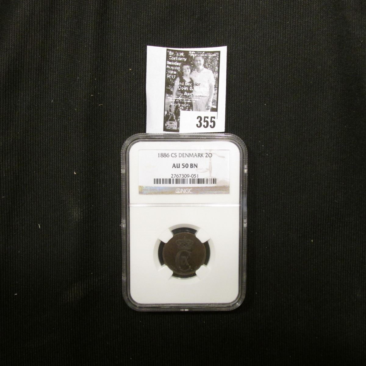 1886 CS Denmark Two Ore NGC slabbed AU 50 BN.