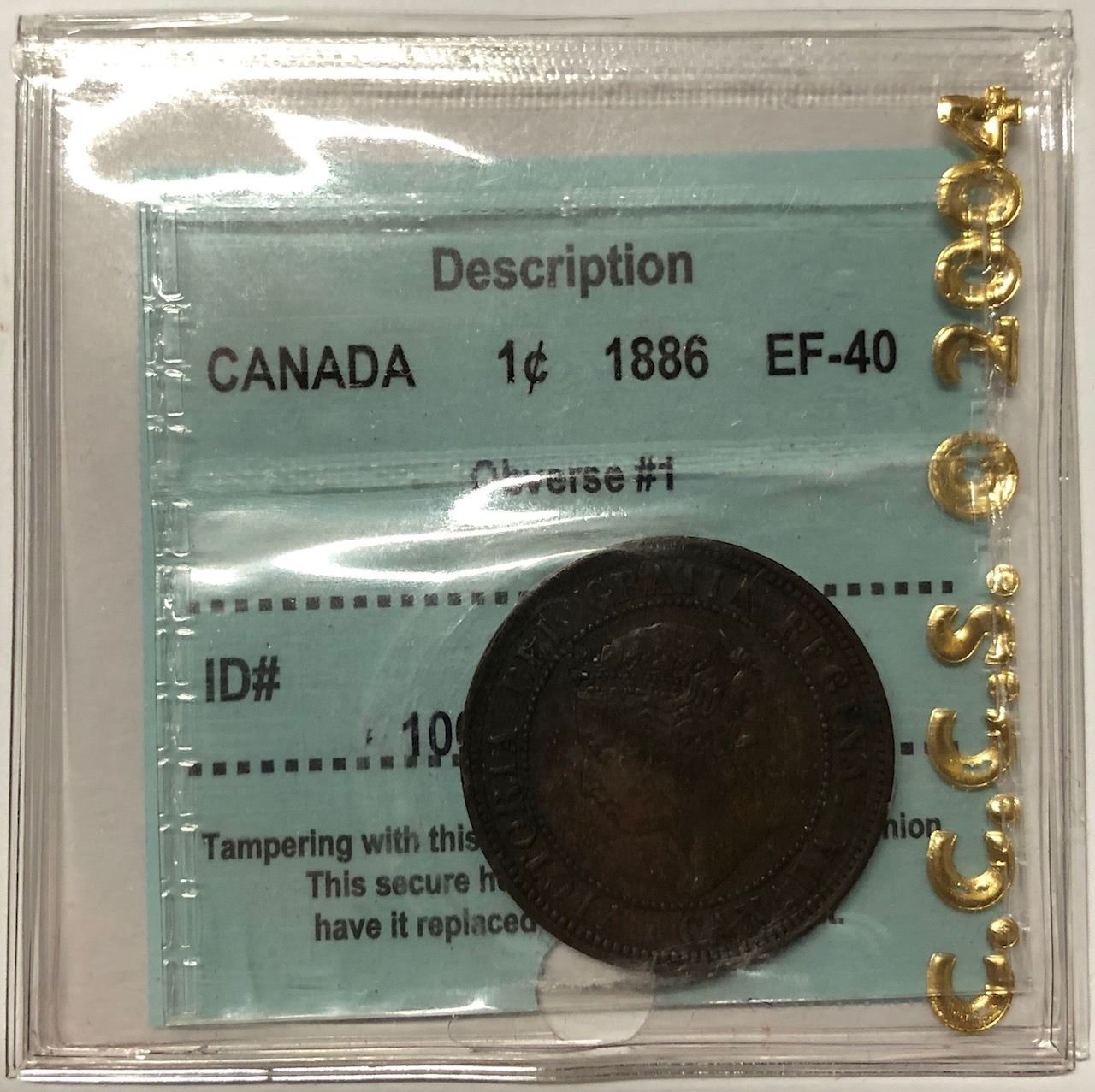 1886 Canada 1 Cent Obverse #1 CCCS EF 40
