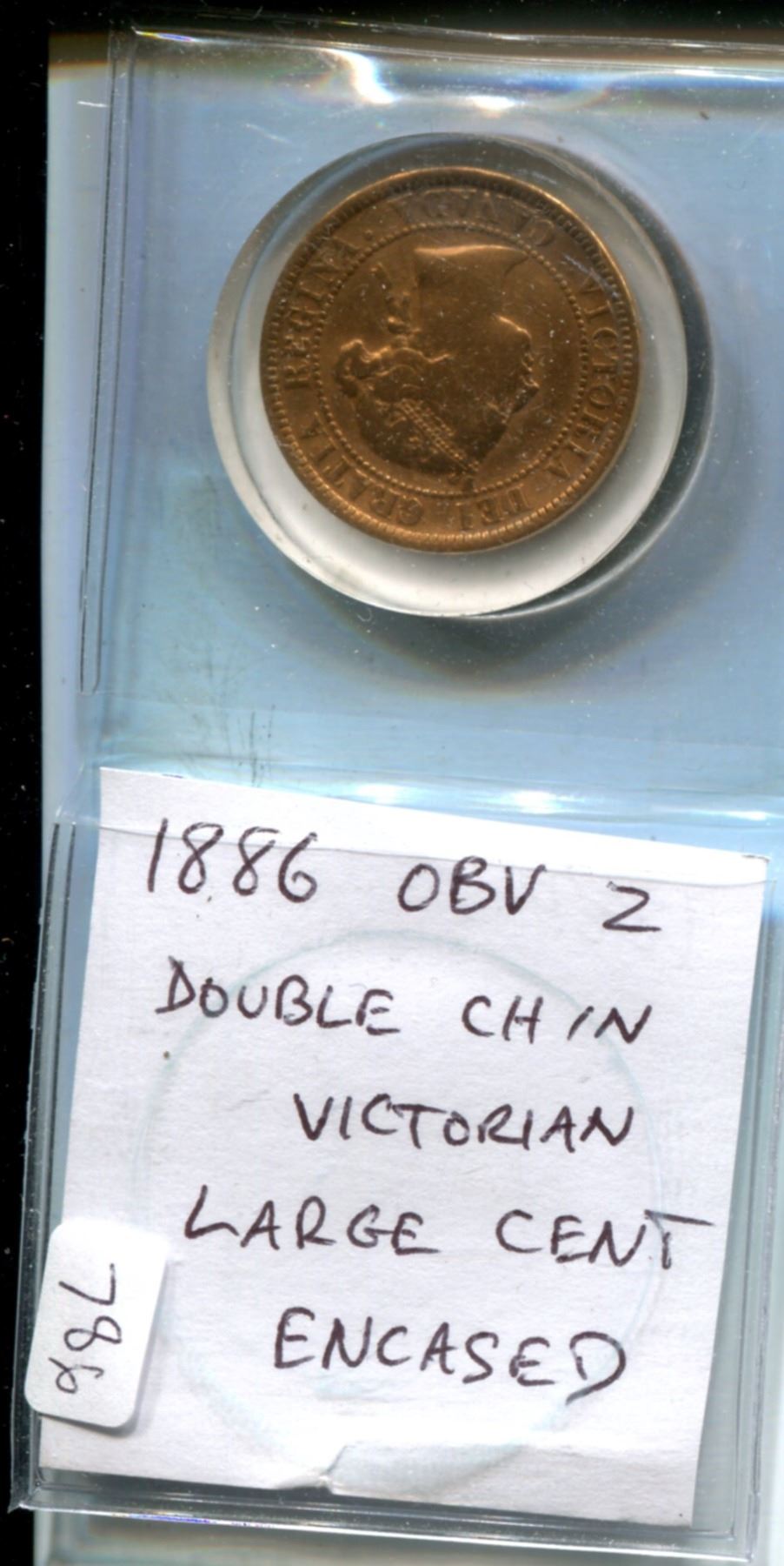1886 Canadian Victorian Large Cent. Obverse 2 (Double Chin). Encased. VG-8. Cleaned.