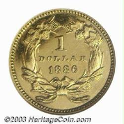 <table><tr><td><TABLE cellSpacing=0 cellPadding=0 width="100%" bgColor=#000000 border=0><TBODY> <TR><TD width="100%"><TABLE cellSpacing=1 cellPadding=3 width="100%" border=0><TBODY><TR><TD width="100%" bgColor=#79735c><FONT face=arial color=#ffffff size=3><B>Description</B> </FONT></TD></TR><TR><TD width="100%" bgColor=#ffffff><FONT face=arial size=2><B>1886 G$1 --Cleaned--ANACS. Net PR55.</B></I> A few wispy hairlines cross the mirrored surfaces. A well struck piece with canary-gold color. Although 1,016 proofs were struck, far fewer than this number has been certified as proofs. In fact, proofs are many times scarcer than the business strikes, of which 5,000 pieces were produced. </FONT></TD></TR></TBODY></TABLE></TD></TR></TBODY></TABLE><BR><A name=PricesRealized></A><TABLE cellSpacing=0 cellPadding=0 width="100%" bgColor=#000000 border=0><TBODY><TR><TD width="100%"><TABLE cellSpacing=1 cellPadding=3 width="100%" border=0><TBODY><TR><TD width="100%" bgColor=#79735c><A name=PR><FONT face=arial color=#ffffff size=3><B>Previous Prices from Heritage Auctions</B> </FONT></A></TD></TR><TR><TD bgColor=#f6f6ed>No Prior Data Recorded </TD></TR><TR><TD bgColor=#ffffff><FONT face=arial size=1 ?>PLEASE NOTE: All prices realized reflect the final hammer price PLUS the buyer's premium in auctions that charge a buyer's premium. Each item has a notation at the top of the listing indicating whether that lot included a buyer's premium. Example: A item that sells with a final hammer price of $100 and a 20% buyer's premium will display with a price realized of $120. All information listed is intended to be as accurate as possible, but errors are possible. Please use this guide carefully and inform us of any inaccuracies. </FONT></TD></TR></TBODY></TABLE></TD></TR></TBODY></TABLE><BR><TABLE cellSpacing=0 cellPadding=0 width="100%" bgColor=#000000 border=0><TBODY><TR><TD width="100%"><TABLE cellSpacing=1 cellPadding=3 width="100%" border=0><TBODY><TR><TD width="100%" bgColor=#79735c colSpan=6><FONT face=arial color=#ffffff size=3><B>Price Guide*</B> </FONT></TD></TR><TR bgColor=#f6f6ed><TD align=middle><B>Grade</B> </TD><TD align=middle><B>Coin World<BR>(Trends)</B> </TD><TD align=middle><B>Numismedia<BR>Retail</B> </TD><TD align=middle><B>Numismedia<BR>Wholesale</B> </TD><TD align=middle><B>Coin<BR>Universe</B> </TD><TD align=middle><B>Heritage<BR>Value Index</B> </TD></TR><TR bgColor=#ffffff><TD align=middle>53</TD><TD align=right>---</TD><TD align=right>---</TD><TD align=right>---</TD><TD align=right>---</TD><TD align=right>$1,544.73</TD></TR><TR style="FONT-WEIGHT: bold" bgColor=#cccfdd><TD align=middle>55</TD><TD align=right>---</TD><TD align=right>---</TD><TD align=right>---</TD><TD align=right>---</TD><TD align=right>$1,603.02</TD></TR><TR bgColor=#ffffff><TD align=middle>58</TD><TD align=right>---</TD><TD align=right>---</TD><TD align=right>---</TD><TD align=right>---</TD><TD align=right>$1,690.46</TD></TR><TR bgColor=#ffffff><TD colSpan=6><FONT size=1>*All information listed is intended to be as accurate as possible, but errors are possible. No item may be returned or refused based on this information which is provided as a service to our customers. You should contact each pricing source directly to determine the accuracy of this information. </FONT></TD></TR></TBODY></TABLE></TD></TR></TBODY></TABLE><BR><TABLE cellSpacing=0 cellPadding=0 width="100%" bgColor=#000000 border=0><TBODY><TR><TD width="100%"><TABLE cellSpacing=1 cellPadding=3 width="100%" border=0><TBODY><TR><TD width="100%" bgColor=#79735c><FONT face=arial color=#ffffff size=3><B>Population Guide</B> </FONT></TD></TR><TR bgColor=#ffffff><TD align=middle><!-- Begin Output of Population Grid--><TABLE cellSpacing=0 cellPadding=0 width="100%" border=0><TBODY><TR><TD vAlign=center><TABLE cellSpacing=0 width="100%" border=1 cellsadding="3"><TBODY><TR><TD vAlign=center><TABLE cellSpacing=0 cellPadding=3 width="100%" border=1><TBODY><TR><TD vAlign=center align=middle bgColor=#f0f1e8 colSpan=2 <CENTER><FONT face=Arial size=2><B>PCGS Pop </B></FONT><CENTER></CENTER></TD><TD vAlign=center align=middle bgColor=#f0f1e8 colSpan=2><CENTER><FONT face=Arial size=2><B>NGC Pop</B></CENTER></FONT></TD></TR><TR><TD vAlign=center><FONT face=Arial size=2>(55)</FONT> </TD><TD vAlign=center align=right><FONT face=Arial size=2>0</FONT> </TD><TD vAlign=center><FONT face=Arial size=2>(55)</FONT> </TD><TD vAlign=center align=right><FONT face=Arial size=2>0</FONT> </TD></TR><TR><TD vAlign=center><FONT face=Arial size=2>(>55)</FONT> </TD><TD vAlign=center align=right><FONT face=Arial size=2>69</FONT> </TD><TD vAlign=center><FONT face=Arial size=2>(>55)</FONT> </TD><TD vAlign=center align=right><FONT face=Arial size=2>21</FONT> </TD></TR></TBODY></TABLE></TD></TR></TBODY></TABLE></TD></TR></TBODY></TABLE><!-- End Output of Population Grid--></TD></TR></TBODY></TABLE></TD></TR></TBODY></TABLE><BR><TABLE cellSpacing=0 cellPadding=0 width="100%" bgColor=#000000 border=0><TBODY><TR> Important notice: Heritage usually auctions material at the rate of 200-250 lots per hour. On some occasions eBay Live bid software or the Internet may not be able to keep up with the pace of the auction. We recommend placing a realistic absentee bid now as insurance to avoid disappointment. Occasionally the auctioneer may eliminate or reject an eBay Live bid, and the auctioneer may also reopen a lot after the close of the eBay live bidding (usually because we missed an audience bid), and may reject your bid even if it shows you as the winning bidder. By bidding via eBay Live, you agree that Heritage may award the lot to another bidder at its sole discretion under the circumstances described above or any other reasonable circumstances. Also please note that all Heritage lots purchased through eBay Live carry a 20% Buyer's Premium. Please make sure you read the Terms and Conditions before you bid.</TD></TR></TBODY></TABLE></TD></TR></TBODY></TABLE>