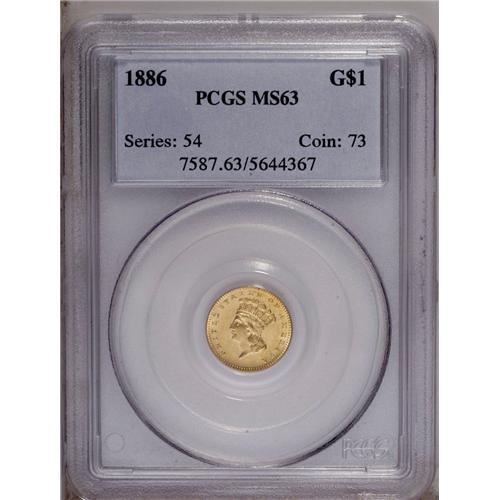 1886 G$1 MS63 PCGS. Fully struck with reflective, sati