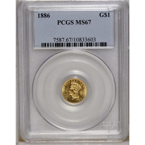 1886 G$1 MS67 PCGS. Frosty, highly lustrous surfaces a