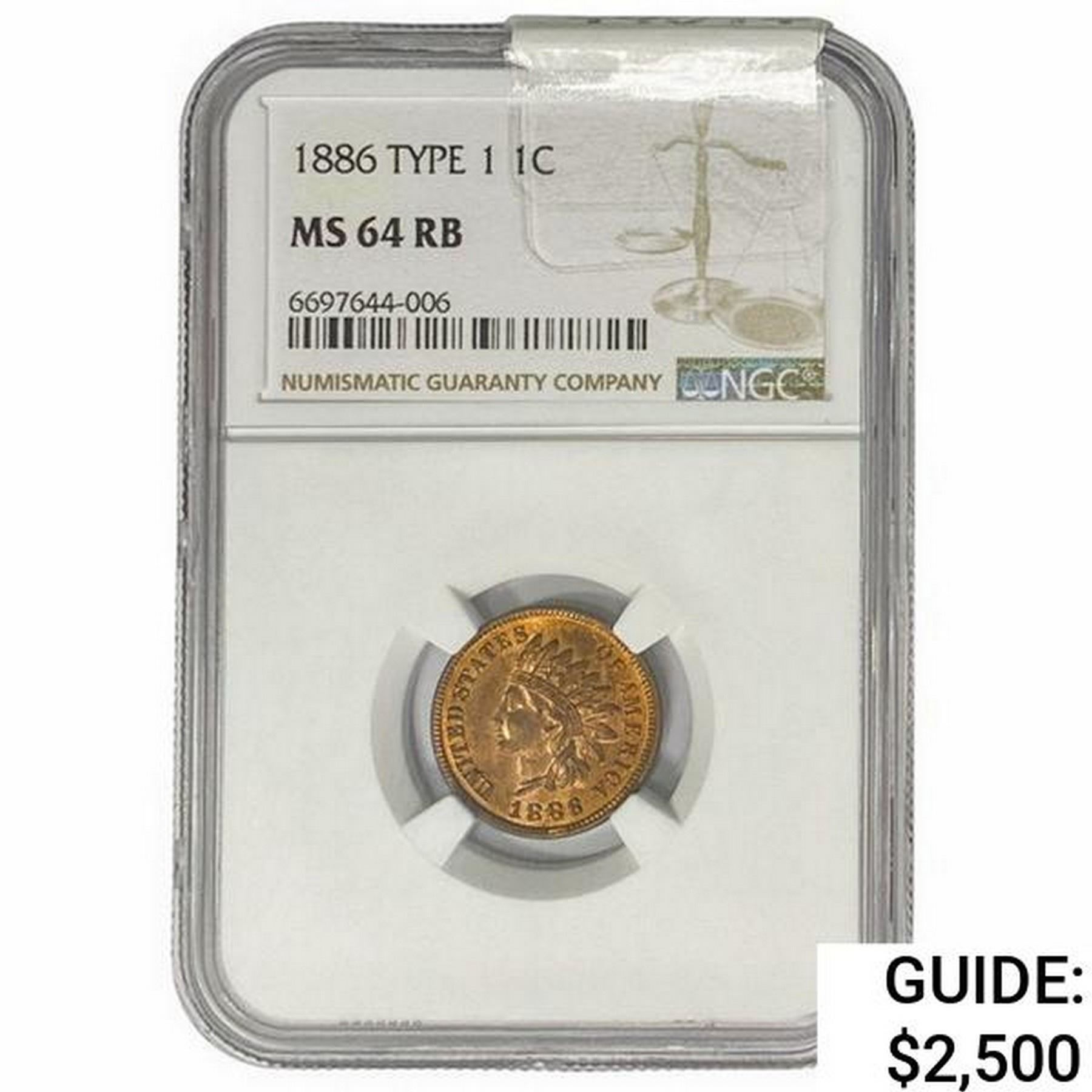 1886 Indian Head Cent NGC MS64 RB, TY1