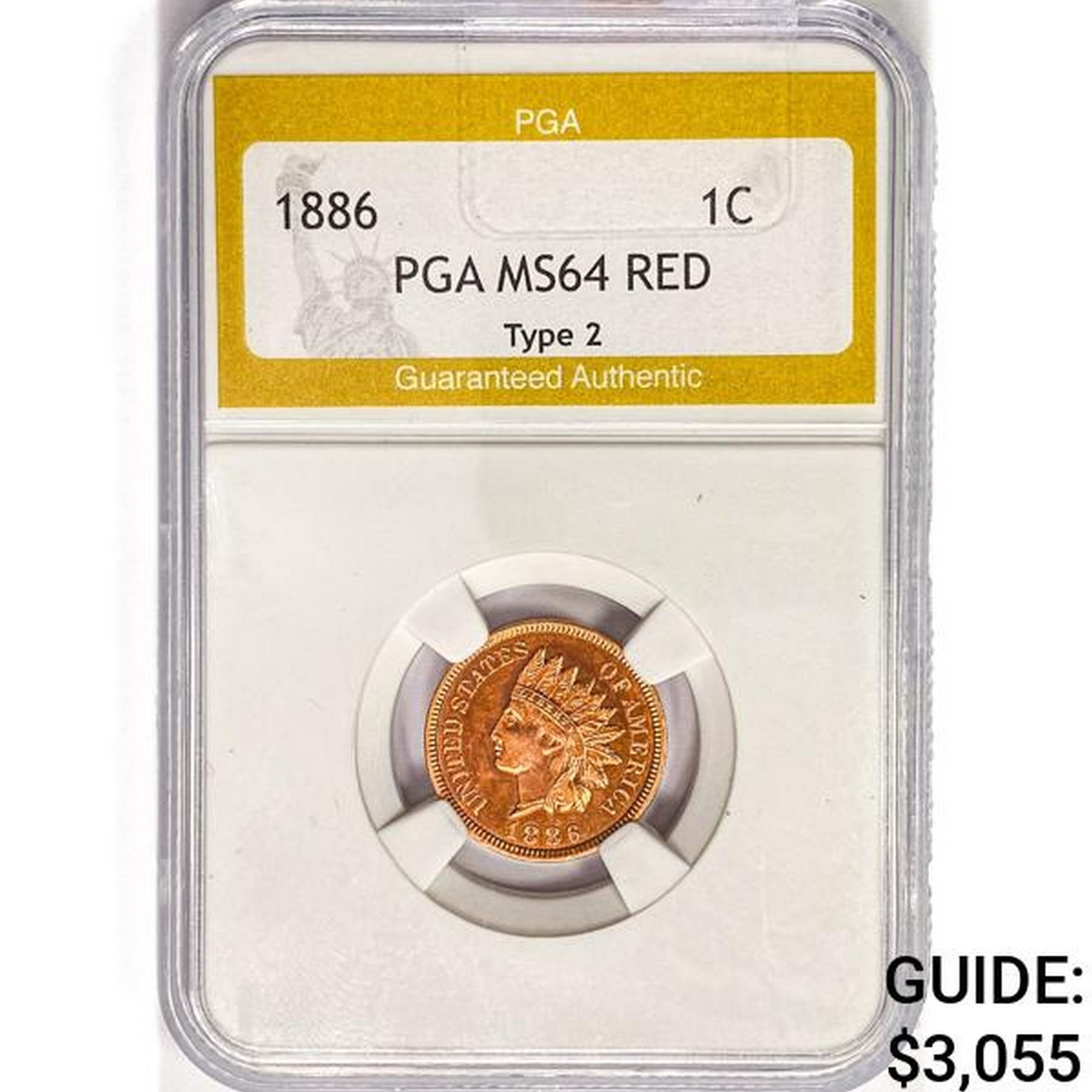 1886 Indian Head Cent PGA MS64 RED, Type 2