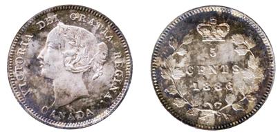 1886. Large 6. ICCS Mint State-64. Golden to green scattered shades of toning.