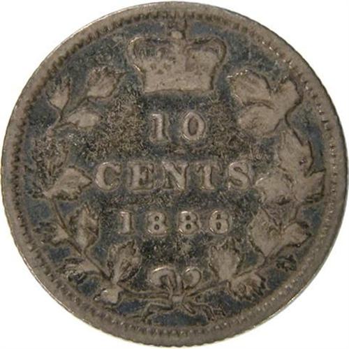 Canada Ten Cents 1886 Large Knobbed 6, Obverse 4, Fine. Light medium toning
