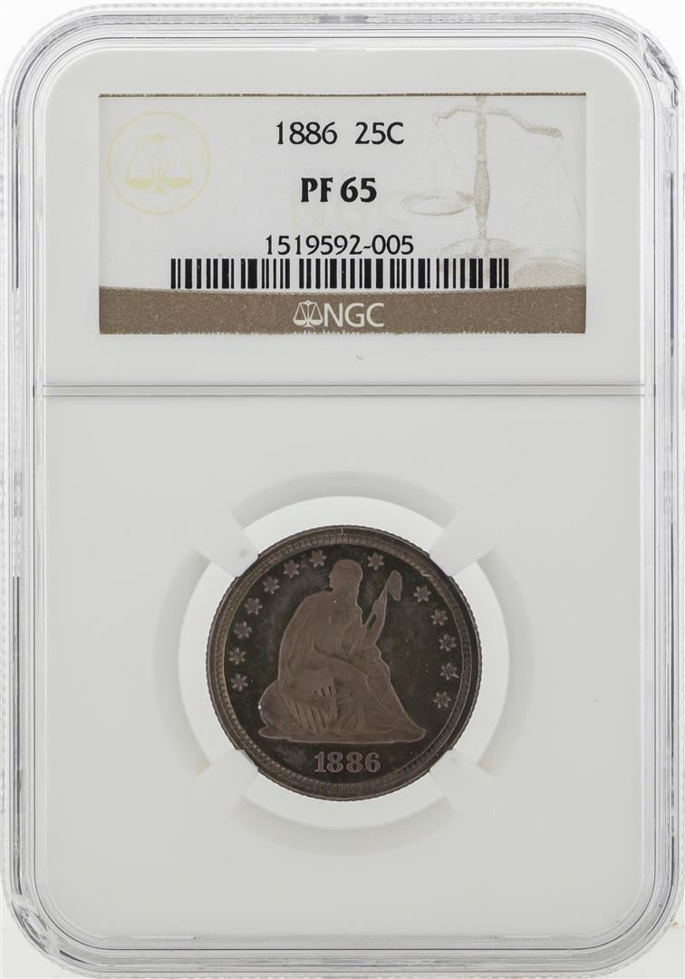 One 1886 Liberty Quarter Dollar Coin NGC PF65. NGC Certified.