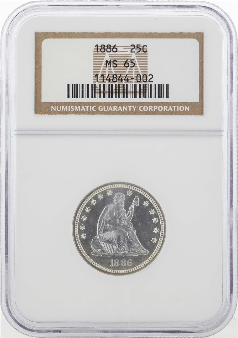 One 1886 Liberty Seated Quarter Dollar Coin NGC MS65. NGC Certified.