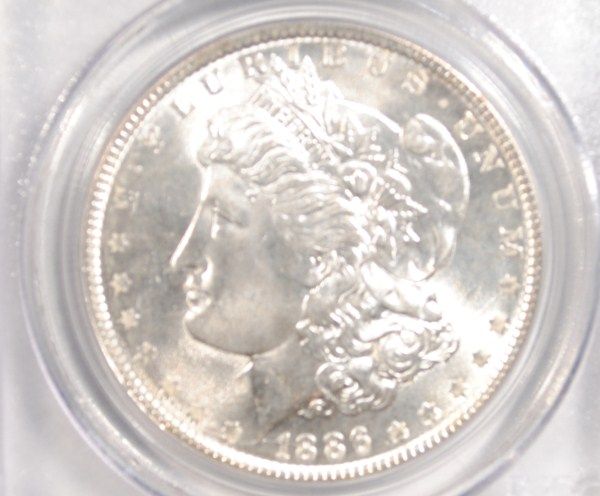 A HIGH GRADE FOR THIS HIGHLY LUSTROUS MORGAN DOLLAR, ESTIMATE $315.00 TO $335.00