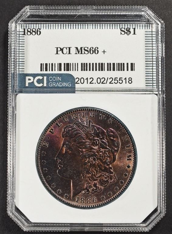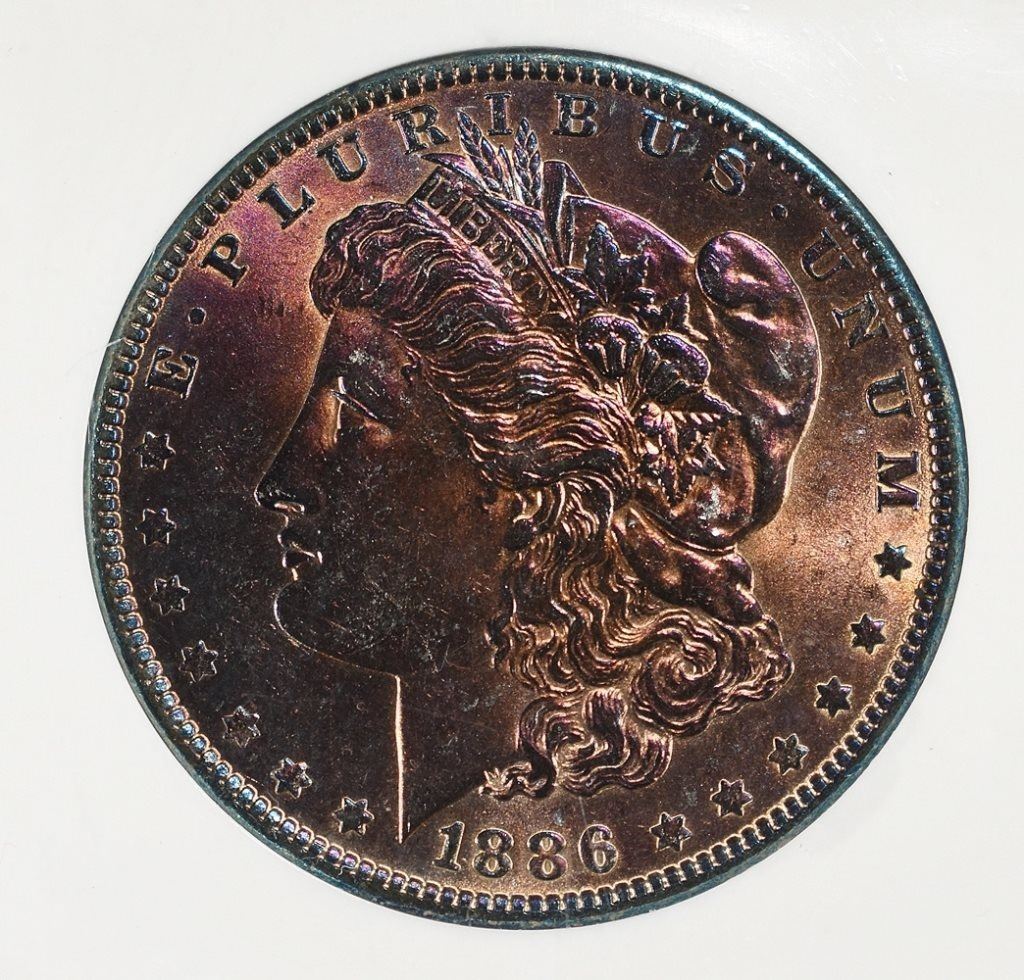 1886 MORGAN DOLLAR PCI SUPERB GEM BU, NICE COLOR